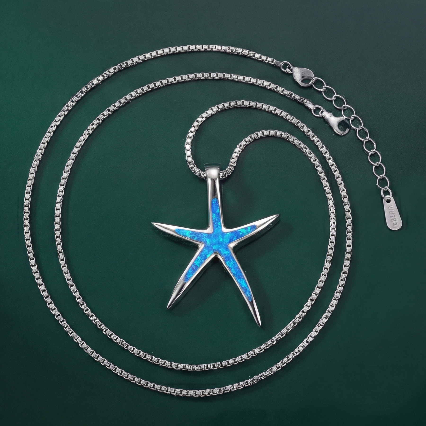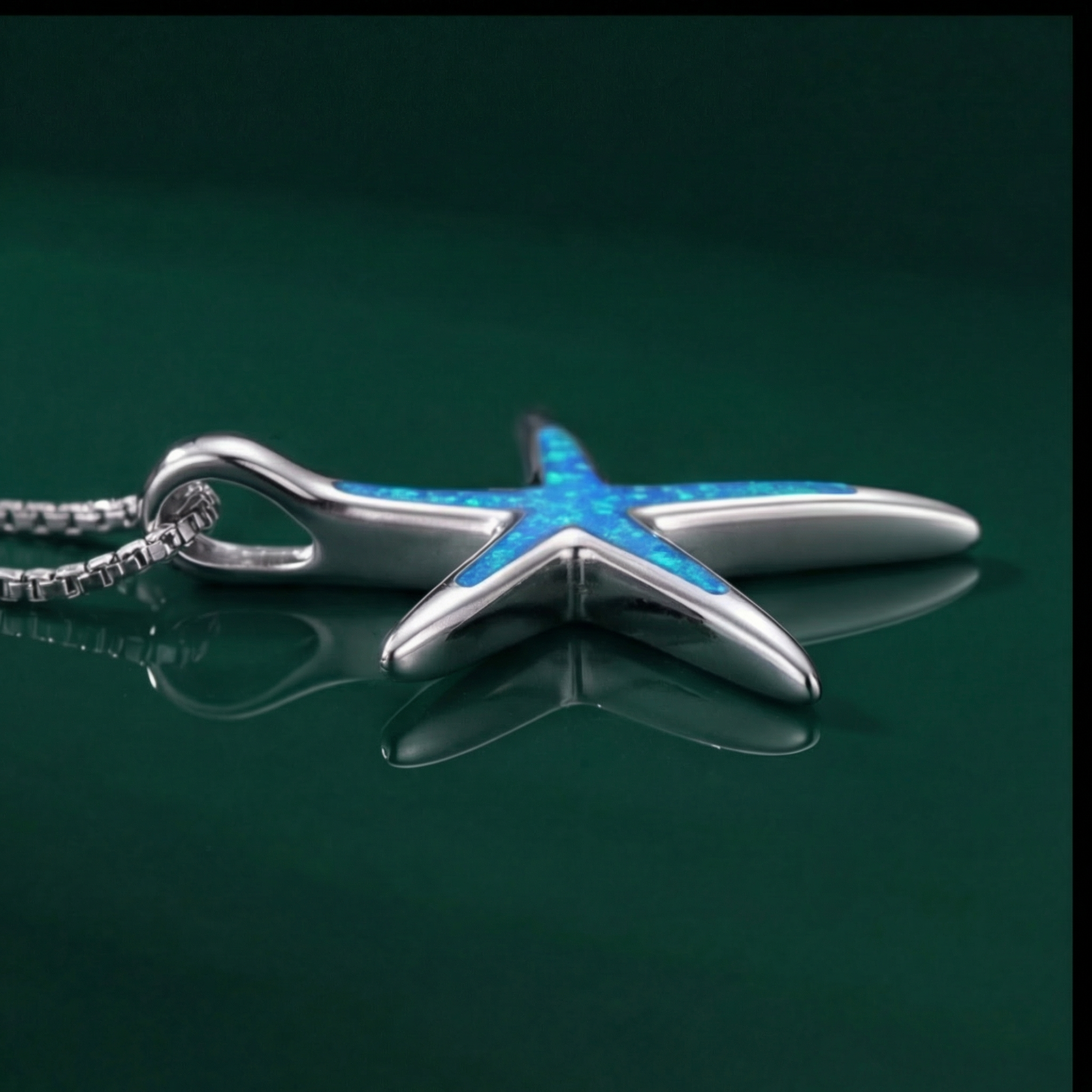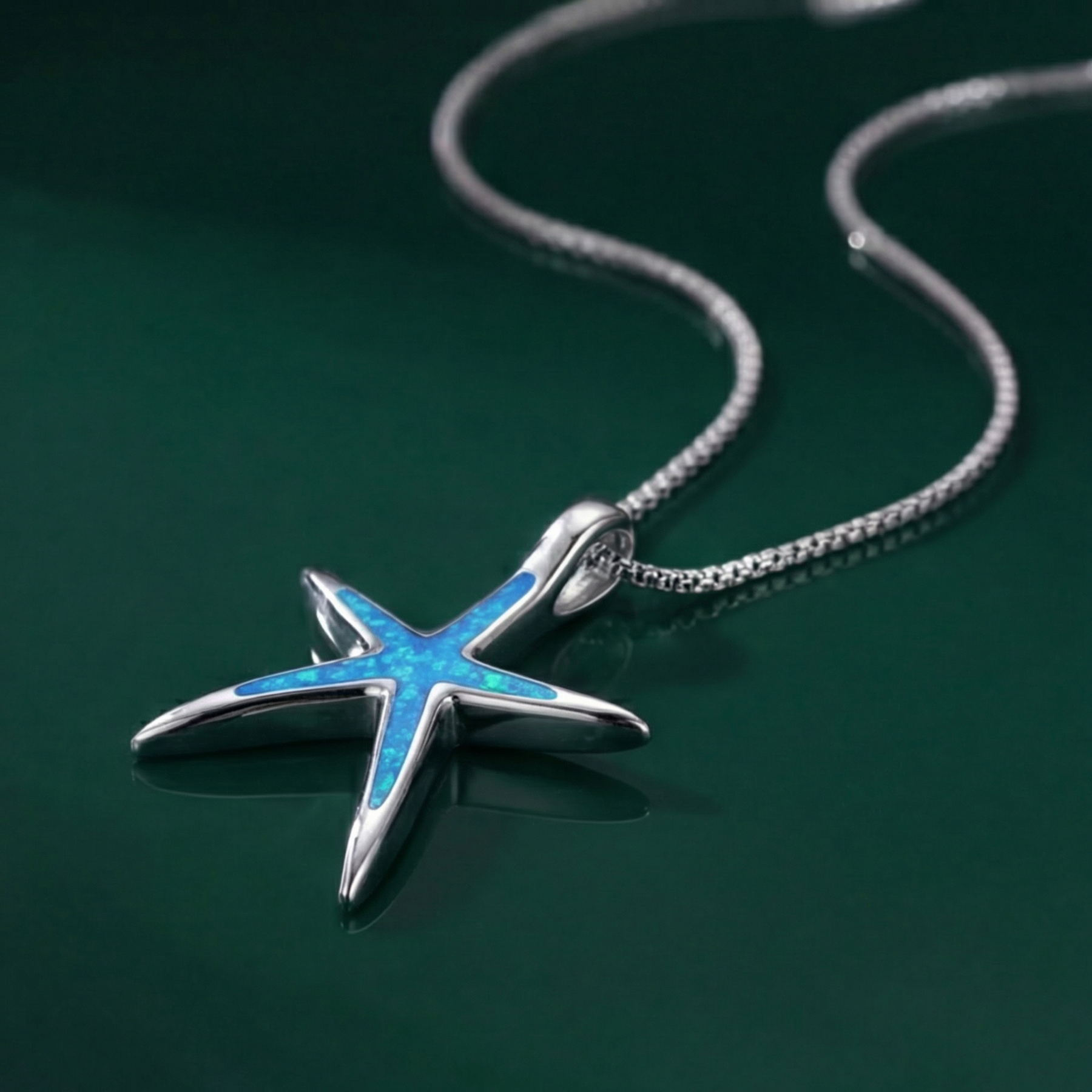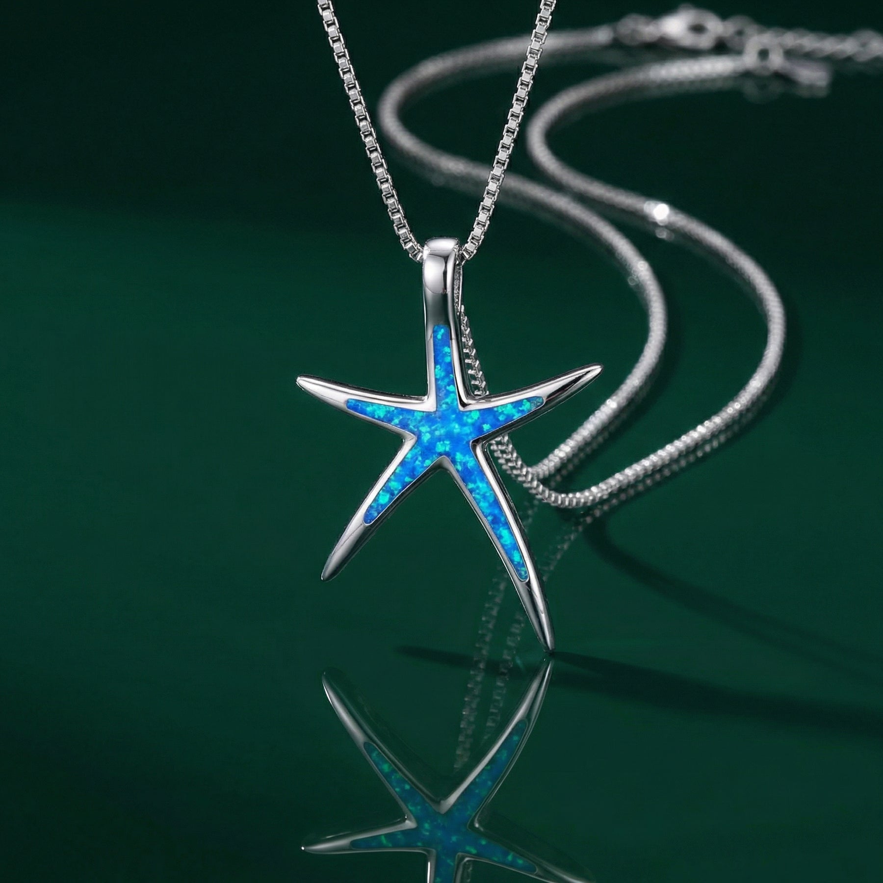 Blue Opal and Silver Starfish Necklace