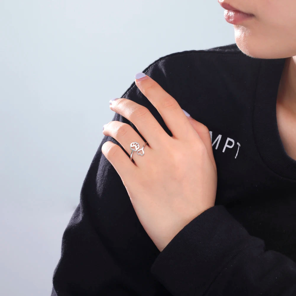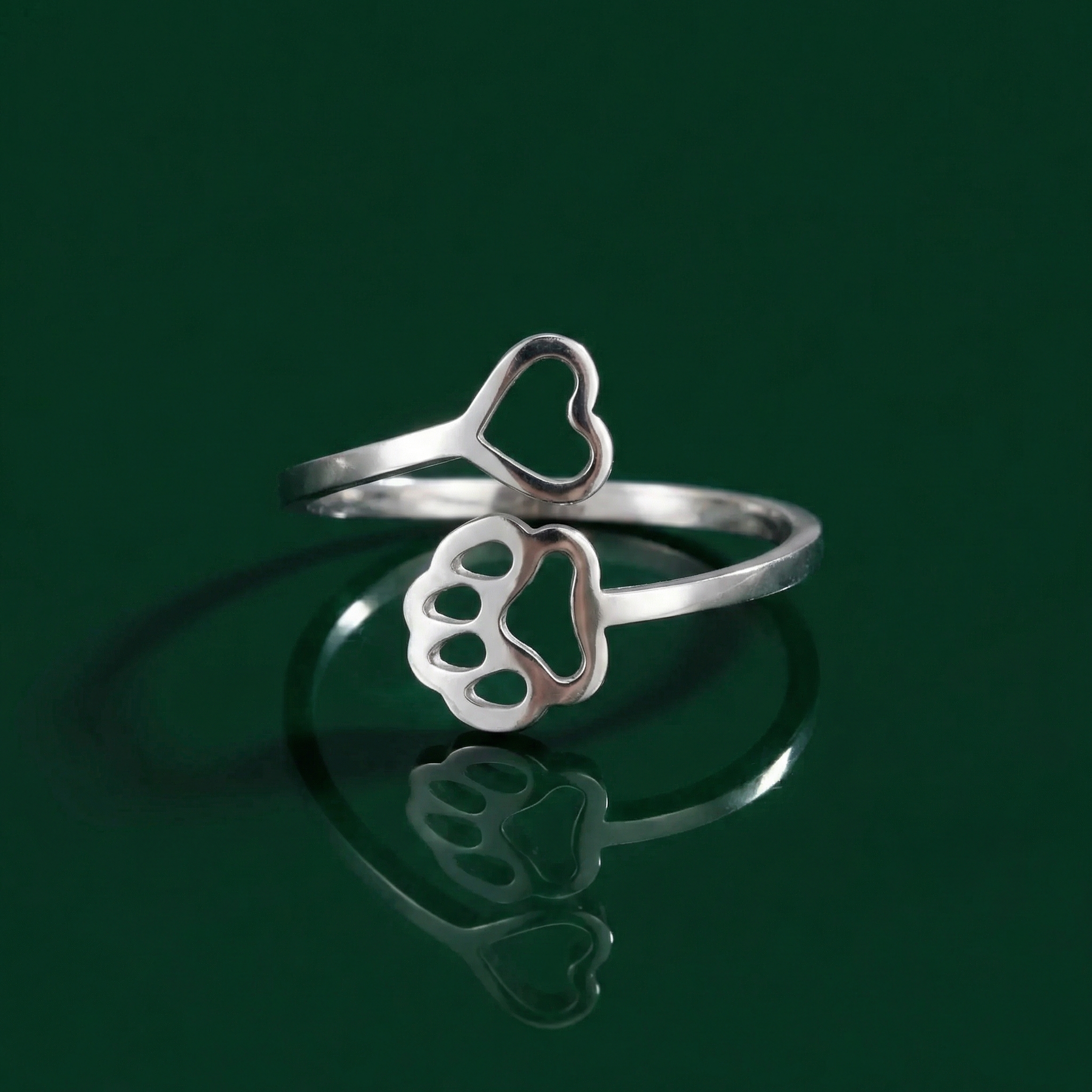 This elegant, adjustable ring is the perfect way to celebrate the bond between you and your pet. Crafted with a delicate gold finish, it combines a sweet paw print and a heart to create a timeless tribute that fits any finger comfortably. Whether you are a proud dog mom or a cat lover, this piece adds a touch of warmth to your everyday style.