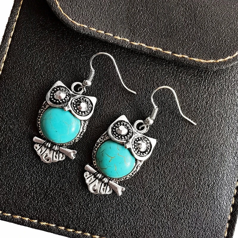 Embrace your inner wisdom with these stunning owl-shaped earrings that perfectly blend bohemian flair with timeless elegance. These eye-catching accessories feature a vibrant faux-turquoise stone that serves as the owl's body, creating a bold pop of color for any outfit. Whether you are dressing up for a night out or adding a touch of whimsy to your daily look, these earrings are the ultimate conversation starter.