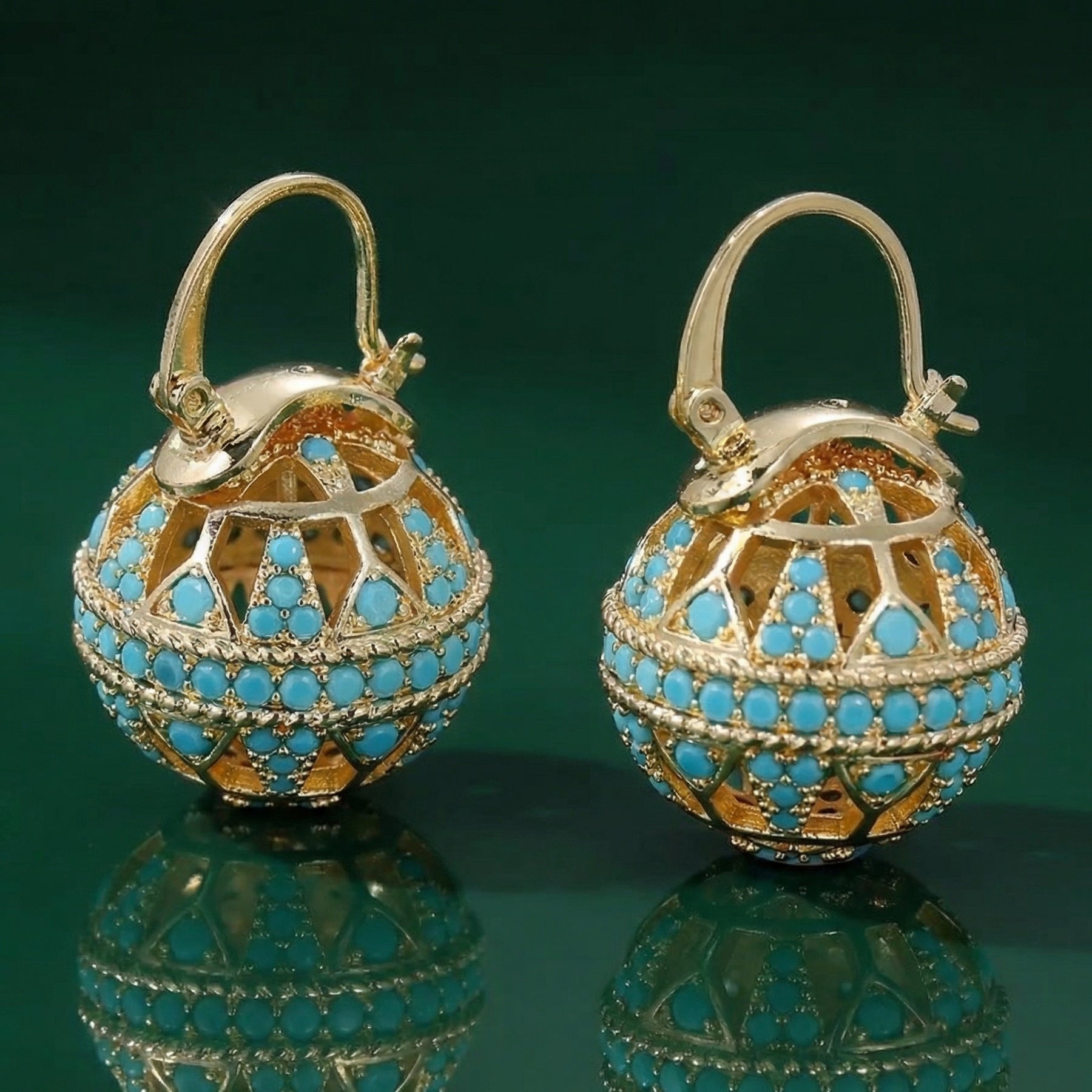 Turquoise Filigree Globe Drop Earrings