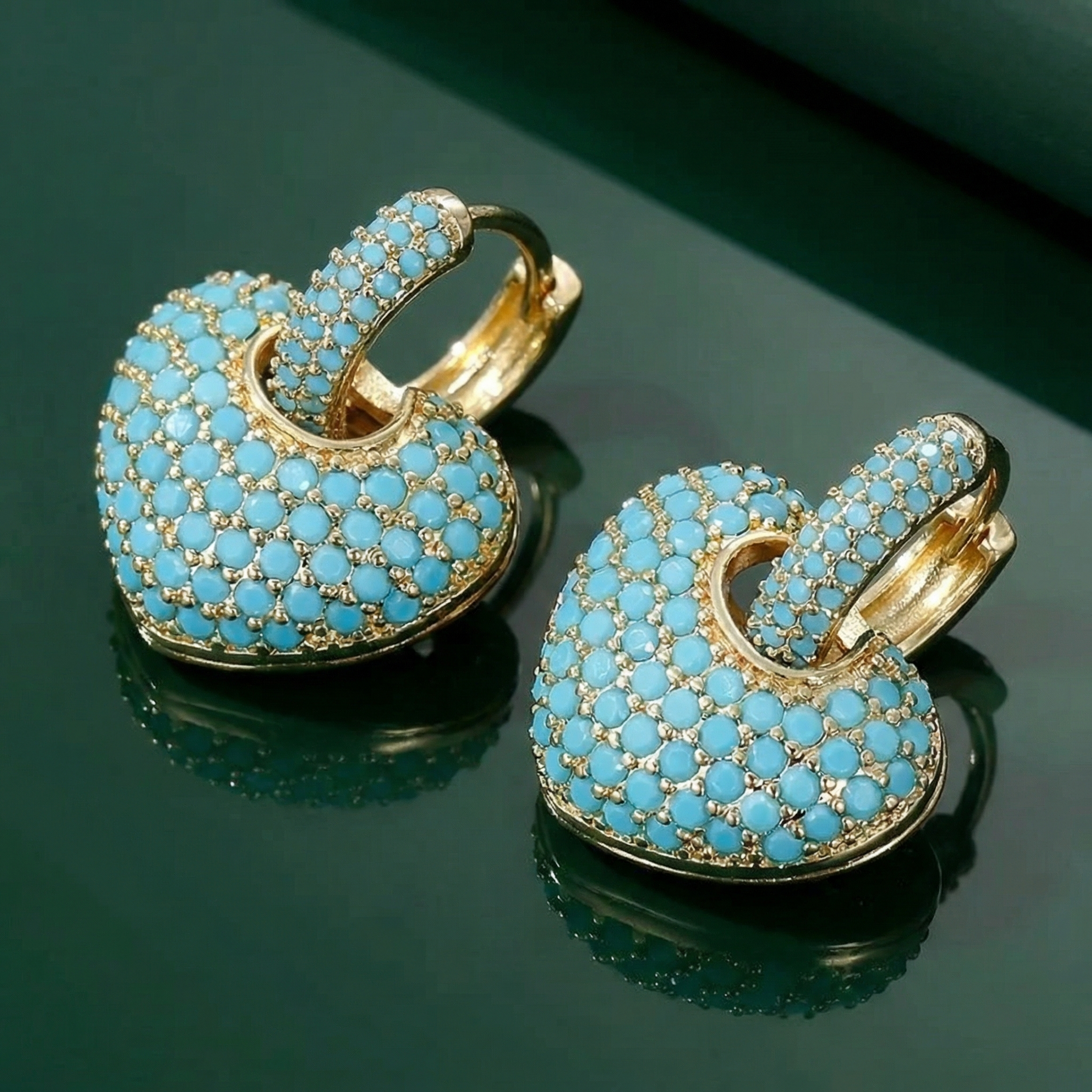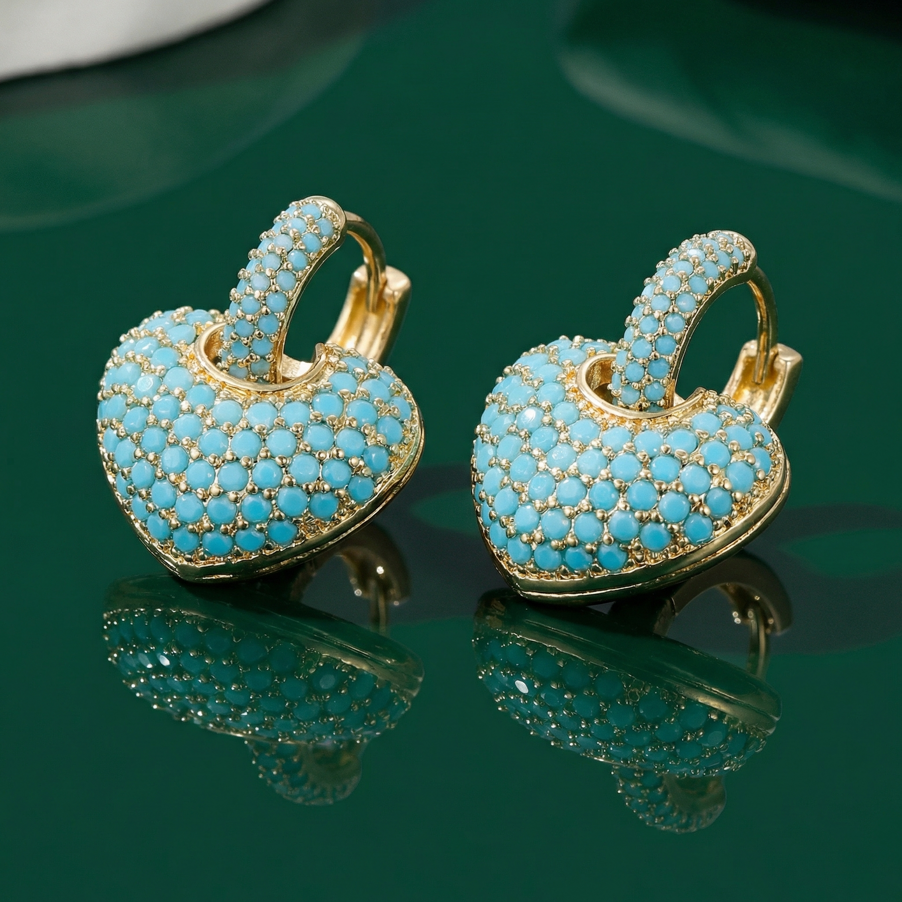 Turquoise Heart Pavé Lock Earrings