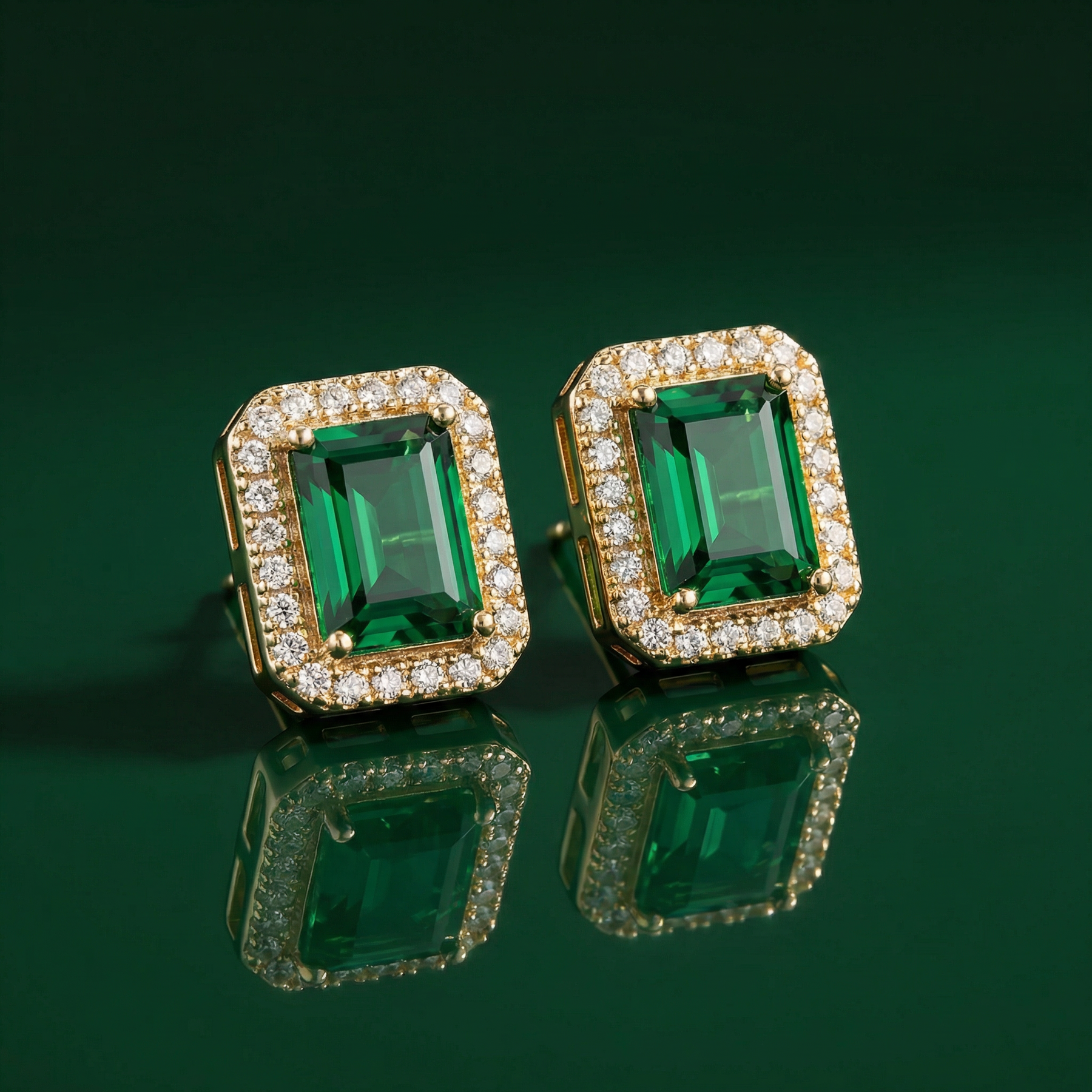Emerald-Cut Precision: Each earring features a lush green gemstone cut into a sophisticated rectangular silhouette to maximize internal light reflection and color depth.