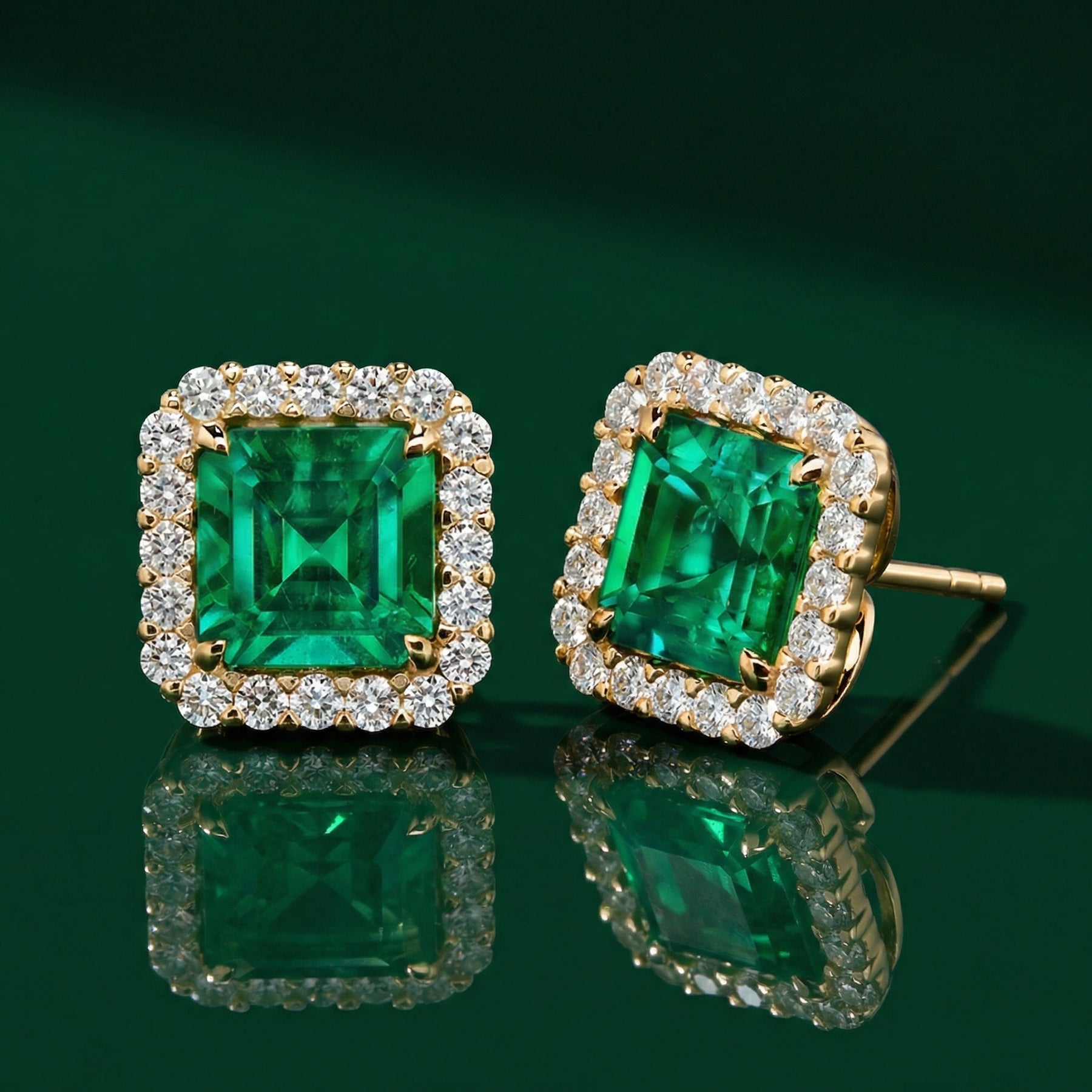 Elevate your jewelry collection with a pair of studs that define stunning geometric luxury. These earrings feature brilliant square-cut emerald-toned stones at their heart, each framed by a shimmering border of crystals to create a radiant halo effect. They are the perfect choice for the modern woman looking to add a vibrant pop of color to her formal or professional attire.