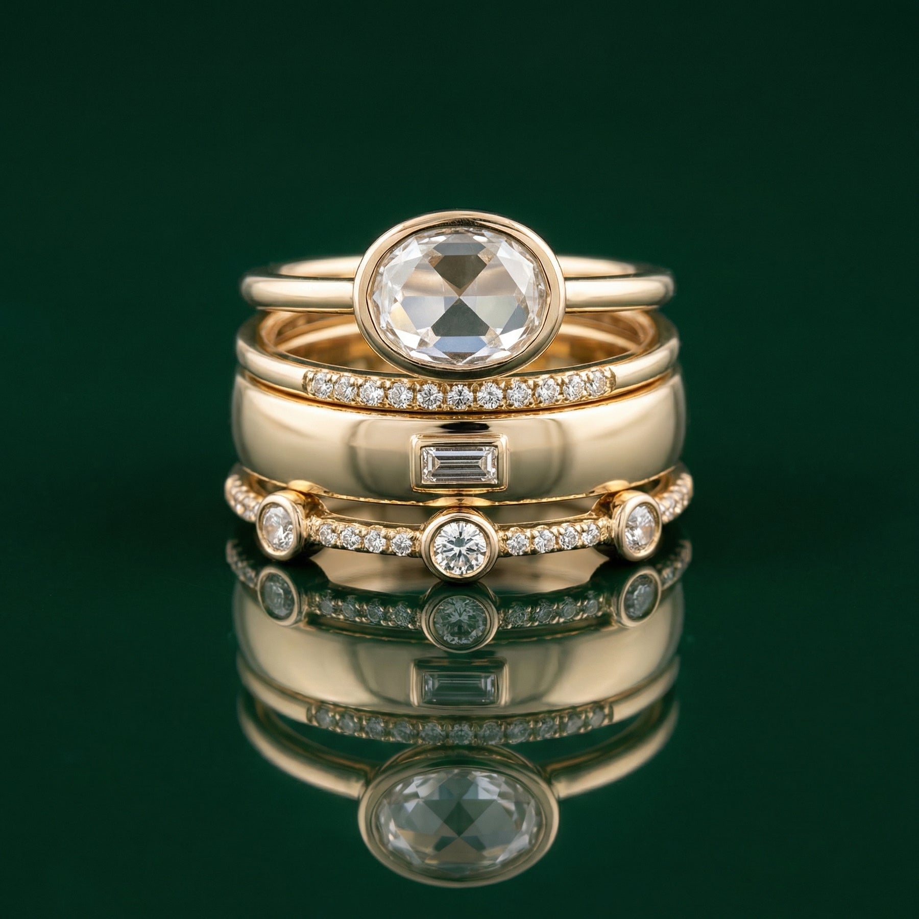 π The Lily - Vintage Gold and Zirconia Ring Set