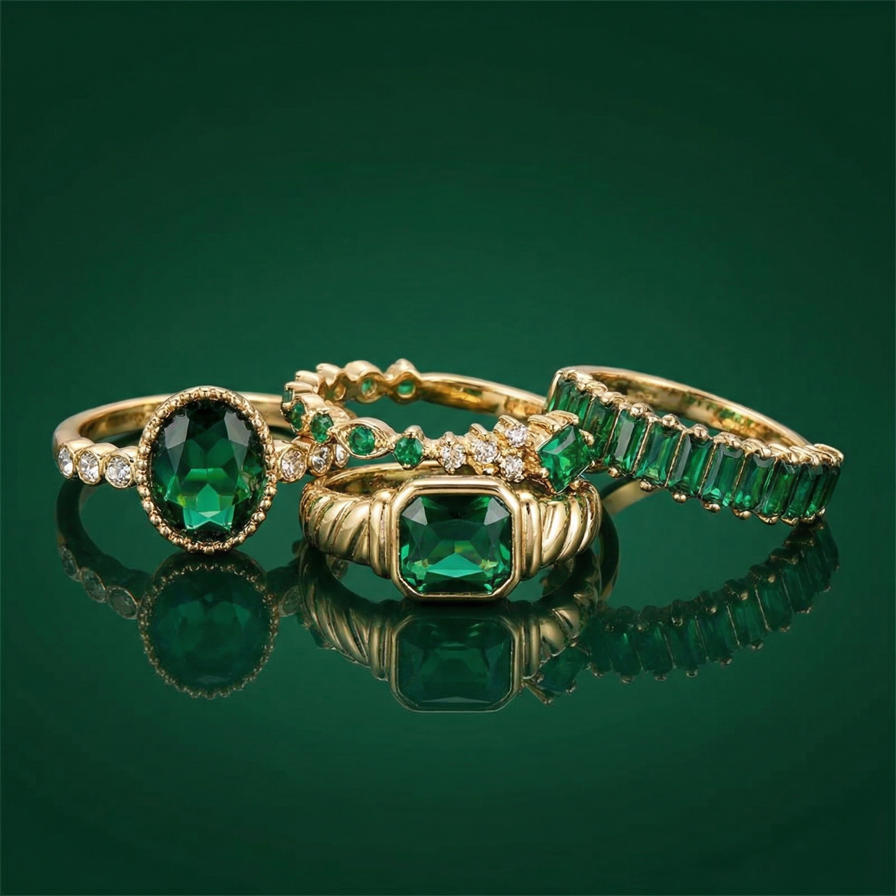 Zarina Exquisite Emerald Gold Ring Set