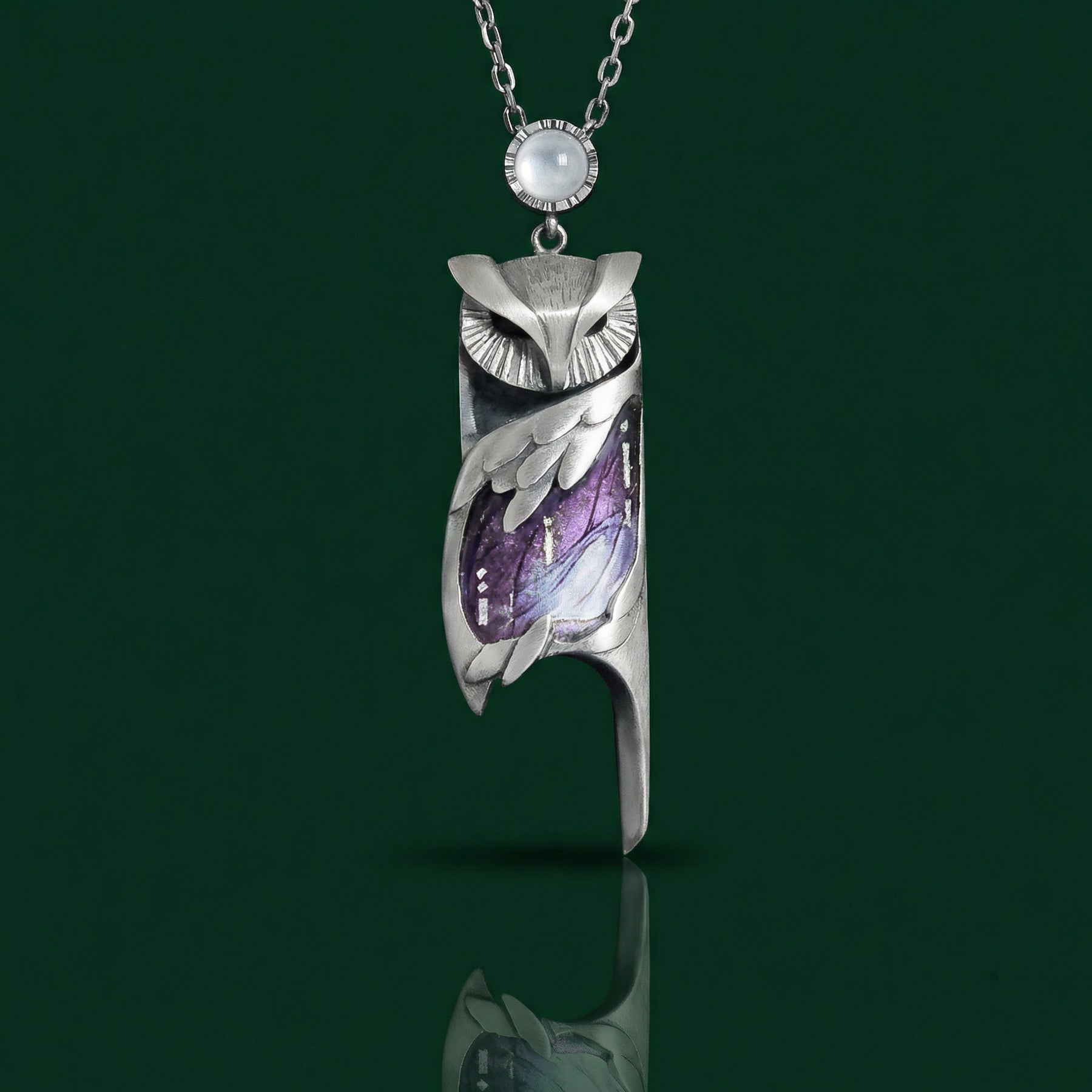π Mystical Purple Wings Owl Pendant