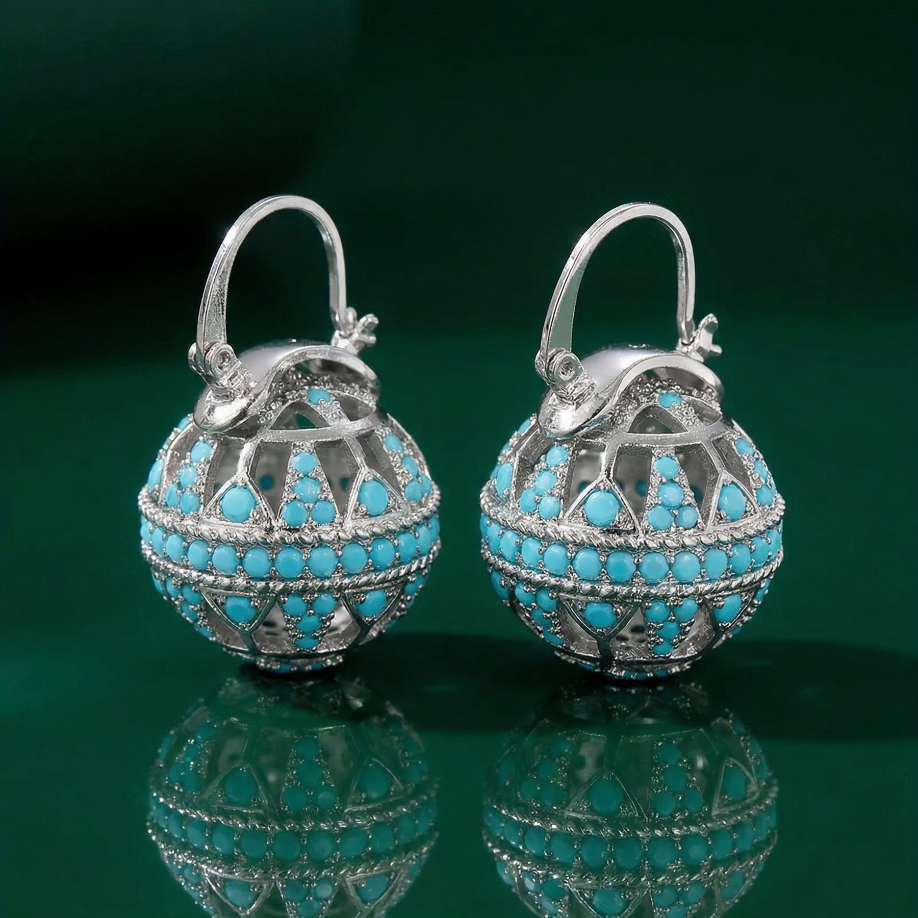 Turquoise Filigree Globe Drop Earrings
